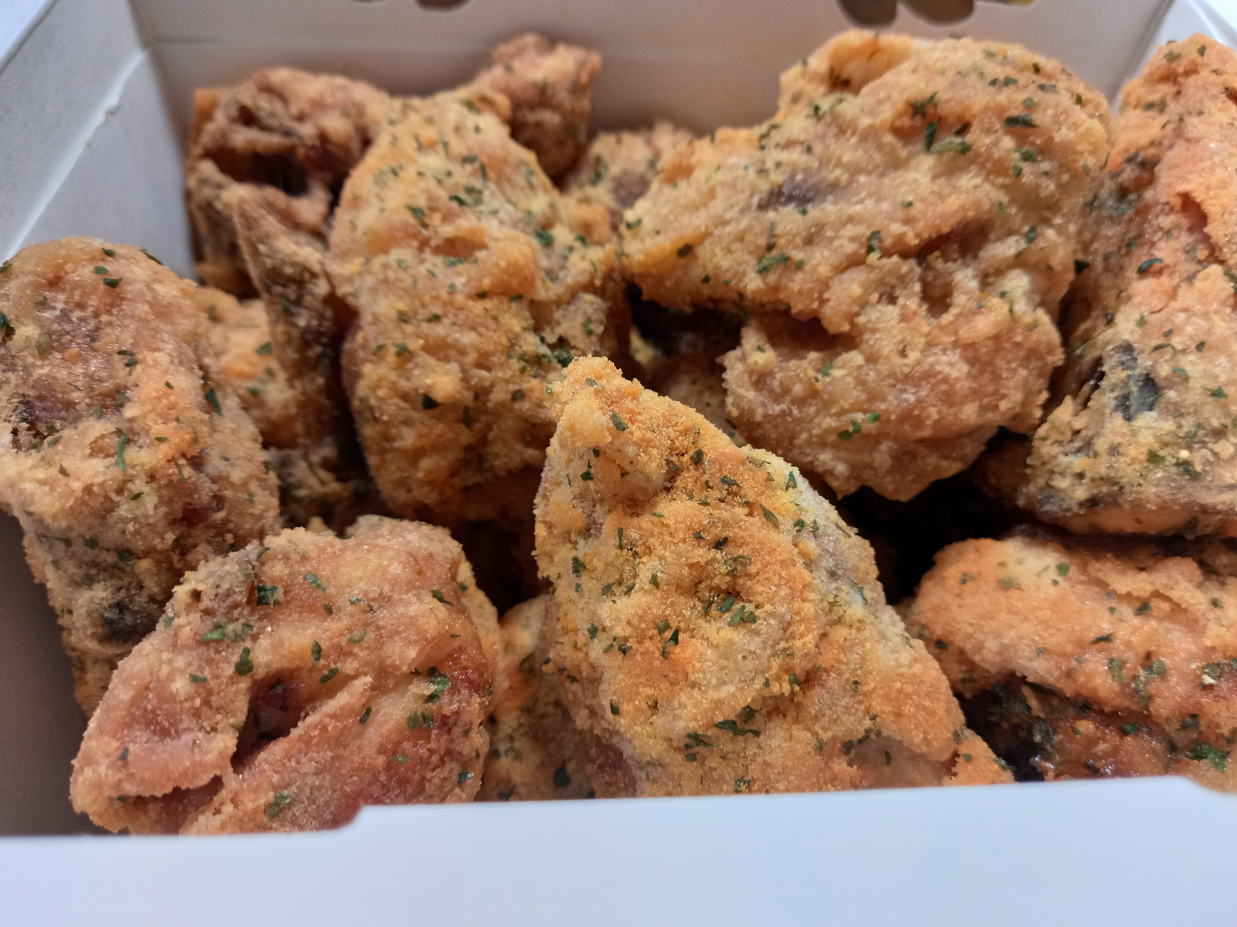 마지막으로 치킨 플러스의 대표 치킨처럼 느껴지는 눈 맞은 치킨입니다.